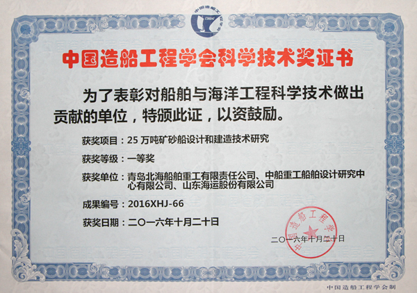 2008年至今,已批量交付18萬(wàn)噸散貨船39艘,該船型先后榮獲青島名牌和山東名牌,被譽(yù)為中國(guó)型散貨船。承建交付8.2萬(wàn)噸散貨船16艘。成功建造全球首制25萬(wàn)噸礦砂船,現(xiàn)已累計(jì)交付12艘。其中“山東政通”輪入選2015年世界最佳50艘船舶,成為新一代超大型礦砂船的設(shè)計(jì)建造標(biāo)桿;該船型還榮獲中國(guó)造船工程學(xué)會(huì)科學(xué)技術(shù)一等獎(jiǎng)。成功交付兩艘11.3萬(wàn)噸成品油輪和兩艘功能先進(jìn)的1.3萬(wàn)噸瀝青運(yùn)輸特種船舶,在產(chǎn)品轉(zhuǎn)型升級(jí)、扭轉(zhuǎn)造船單一船型方面取得新的突破。