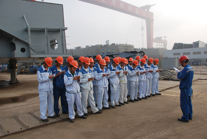 船舶總裝工程部在落實“每日一學(xué)”過程中,注重班組思想文化建設(shè),強化班組每日安全制度學(xué)習(xí)。他們根據(jù)不同工種、不同區(qū)域編制安全作業(yè)手冊,下發(fā)到各班組學(xué)習(xí)使用。把安全生產(chǎn)工作作為班組各項工作的重中之重,作為頭等大事來抓。通過班組安全文化建設(shè),把先進的安全管理理念融入到每個成員的頭腦中,樹立起 “我要安全”的自覺意識、安全價值觀。通過工前會“每日一學(xué)”,抓好對“習(xí)慣性違章”的監(jiān)督檢查和整改措施,提高了員工安全事故的預(yù)知預(yù)防能力、控制和解決能力。