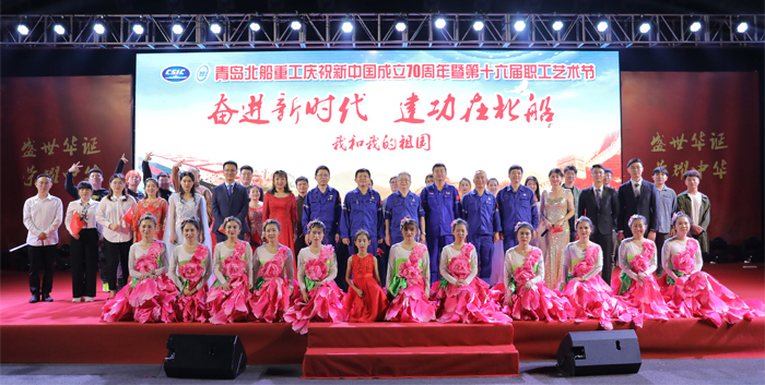 “慶祝新中國成立70周年文藝匯演的舉辦,弘揚了新時代的主旋律,歌頌了黨的豐功偉績和祖國的繁榮富強。”公司黨委書記、董事長王國海表示,伴隨著新中國70年快速發(fā)展的偉大進程,北船重工已從一個以修為主的船廠,一躍成為國家大型骨干造修船企業(yè)。本屆藝術(shù)節(jié)既是公司進入新時代高質(zhì)量發(fā)展時期背景下舉辦的一次文娛盛會,也是對企業(yè)經(jīng)濟建設(shè)和文明建設(shè)成果的一次全面檢驗。本屆藝術(shù)節(jié)的主題是“奮進新時代 建功在北船? 我和我的祖國”,其意義在于大力弘揚以愛國主義為核心的偉大民族精神,充分展示中華人民共和國成立70年來特別是改革開放以來公司所取得的新業(yè)績,展現(xiàn)北船廣大職工的新風采,激發(fā)愛國之心、強國之志,激勵和動員廣大職工永遠跟黨走,愛崗敬業(yè),奮進新時代,建功在北船。我們歌唱祖國,歌唱我們黨。沒有共產(chǎn)黨就沒有新中國,就沒有現(xiàn)在日新月異的現(xiàn)代化祖國。北船重工將不忘初心、牢記使命,深化改革不斷創(chuàng)新,強化精細管理,堅持以提高企業(yè)高質(zhì)量發(fā)展和效益為中心,以更加優(yōu)異的成績向祖國70華誕獻禮。