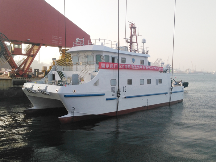 游艇廠為國(guó)家海洋局北海環(huán)境監(jiān)測(cè)中心承制的“曙光12”海灣移動(dòng)監(jiān)測(cè)平臺(tái)下水儀式于日前舉行。公司副總經(jīng)理王國(guó)海陪同國(guó)家海洋局北海分局陳力群副局長(zhǎng)、北海環(huán)境監(jiān)測(cè)中心姜錫仁主任、CCS青島分社林殿翱處長(zhǎng)等參加了下水儀式。