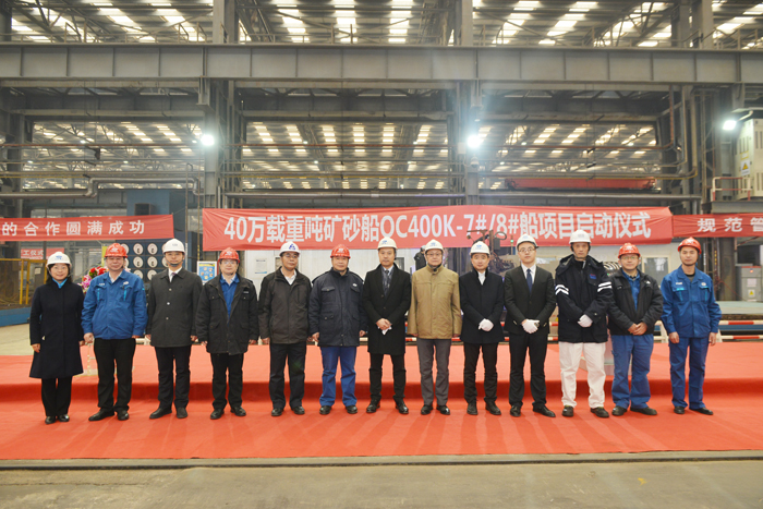 1月19日上午10時38分,公司為工銀金融租賃有限公司建造的40萬載重噸礦砂船7號、8號船啟動儀式,在造船聯(lián)合廠房舉行。這是繼2016年之后共開建了四艘40萬載重噸礦砂船。