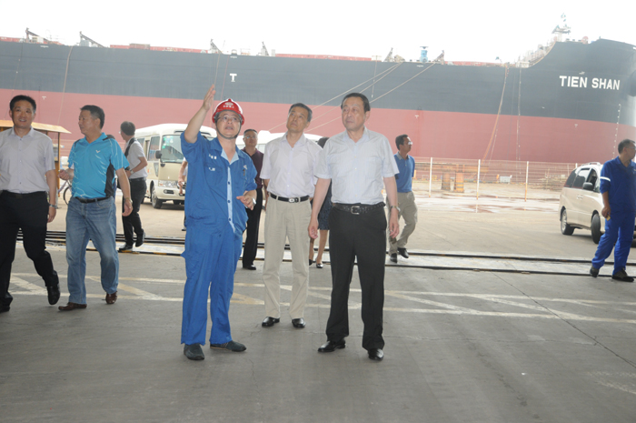 在修船碼頭、聯(lián)合廠房、造船大塢,王國海 向來訪客人介紹了海西灣造修船基地的規(guī)劃選址,以及在船舶市場持續(xù)低迷大環(huán)境下逆勢發(fā)展的相關(guān)情況??疾旖M一行對北船重工良好的區(qū)位發(fā)展優(yōu)勢和取得的令人矚目的業(yè)績表示欽佩。