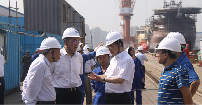 中船重工副總經(jīng)理姜仁鋒歡迎國(guó)資委領(lǐng)導(dǎo)到訪青島武船,并感謝國(guó)資委長(zhǎng)期以來(lái)對(duì)中船重工的關(guān)心、指導(dǎo)與幫助表示衷心的感謝。他指出中船重工全力配合國(guó)資委工作,針對(duì)當(dāng)前嚴(yán)峻市場(chǎng)形勢(shì)下的高端海工裝產(chǎn)品,充分利用好政策機(jī)遇,完成好海工產(chǎn)品的建造完工、維護(hù)及交付任務(wù)。