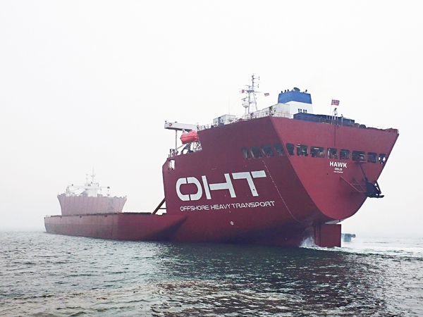 “獵鷹”輪(MV HAWK)是一艘船齡三十年的挪威籍半潛船,于2018年12月7日進(jìn)廠,11日進(jìn)修船1#塢,21日出塢,1月12日離廠試航。此次塢修主要工程有脫硫洗滌塔安裝工程,壓載艙特涂工程20000余平方米,大量鉚焊、管系、機電等常規(guī)塢修工程。