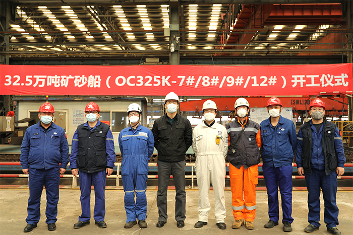 3月23日,公司為交銀金融租賃有限責(zé)任公司建造的4艘32.5萬噸礦砂船系列船同時開工。此次開工儀式在公司聯(lián)合廠房切割區(qū)進行,以視頻連線的方式全程向船東直播開工儀式,開工按鈕由DNV-GL、LR、CCS三家船級社代表共同按下,隨著火花四濺,現(xiàn)場響起了熱烈的掌聲,一場在特殊時期下進行的別開生面的開工儀式順利完成。