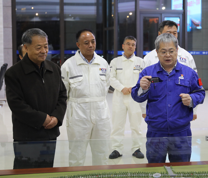 公司黨委書(shū)記、董事長(zhǎng)王國(guó)海在公司沙盤前介紹了公司生產(chǎn)能力、生產(chǎn)流程及與中國(guó)船級(jí)社的合作等情況,并陪同楊傳堂一行參觀了造船碼頭等區(qū)域。