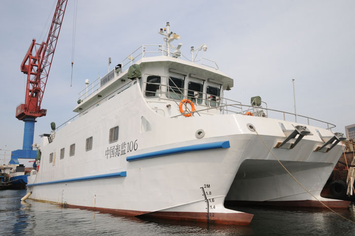 “中國海監(jiān)106”海灣移動監(jiān)測平臺是國家海洋局近30多年來第一艘移動監(jiān)測船,該船型長23.7米,采用鋁合金雙體結(jié)構(gòu),總噸位160噸,功率746kw,航速15節(jié),航行區(qū)域為沿海,合同于2015年簽訂。該移動監(jiān)測平臺是游艇廠建造的首艘鋁合金雙體船,也是游艇廠迄今為止建造的體積最大、結(jié)構(gòu)最為復(fù)雜的船舶。在船舶市場持續(xù)低迷的大背景下,游艇廠依托科技創(chuàng)新轉(zhuǎn)型發(fā)展,充分發(fā)揮自身優(yōu)勢,提升鋁合金艇的建造能力,“海監(jiān)106”船的成功建造,是游艇廠積極開拓海洋裝備產(chǎn)業(yè)市場,積極進(jìn)軍公務(wù)船市場的新亮點(diǎn)。項目建造期間,雙方在商務(wù)、技術(shù)、質(zhì)量、安全生產(chǎn)等方面精誠合作,在船東駐廠組、CCS青島分社的通力合作下,各項工作精心組織,精益施工,使得該船全部達(dá)到或超過合同要求。該船交付后,將主要用于水文氣象、海洋化學(xué)、生物、地質(zhì)等方面的海洋監(jiān)測。