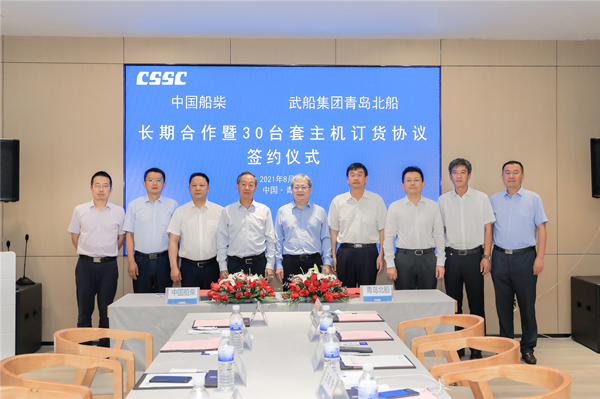 8月9日,中國船柴與北船重工舉行了長期合作暨30臺套主機訂貨協(xié)議簽約儀式。中國船柴董事長張德林,武船集團副總經(jīng)理、公司黨委書記、董事長王國海,公司黨委副書記、總經(jīng)理谷克超等共同出席見證。中國船柴副總經(jīng)理楊小強,公司常務(wù)副總經(jīng)理劉杰代表雙方簽署了協(xié)議。