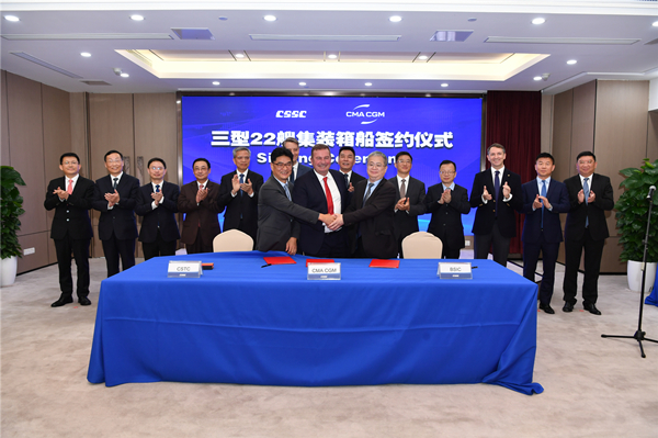 4月30日,中國船舶集團有限公司旗下武船集團青島北海船舶重工有限責(zé)任公司聯(lián)合中國船舶工業(yè)貿(mào)易有限公司,承接達飛海運集團10艘5500TEU集裝箱船訂單。該筆訂單是公司在集裝箱船市場的首次突破,同時是公司與船東達飛海運集團繼修理改裝領(lǐng)域的又一深度合作。至此,公司已提前完成全年經(jīng)營承接目標(biāo)任務(wù)。