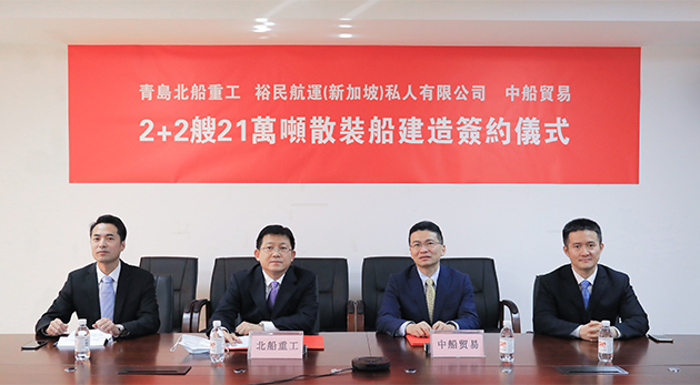 1月29日,中國船舶工業(yè)貿(mào)易有限公司、青島北船重工與裕民航運股份有限公司在青島、臺北兩地,通過視頻形式舉行了2+2艘21萬噸散貨船項目云簽約儀式。這是繼32.5萬噸礦砂船項目后又一次重大戰(zhàn)略合作,充分體現(xiàn)了船東給予的認(rèn)可和支持!