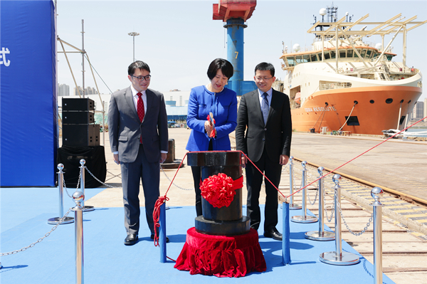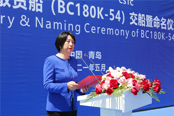 交船暨命名儀式在公司碼頭舉行,中國(guó)船舶工業(yè)貿(mào)易有限公司黨委委員、副總經(jīng)理杜寒冰為該輪命名并砍纜。