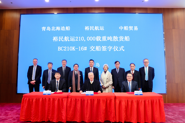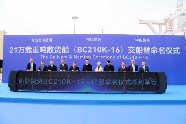 3月24日,北海造船和中船貿(mào)易作為聯(lián)合賣方,為裕民航運(yùn)建造的21萬(wàn)噸散貨船16號(hào)船在公司2號(hào)碼頭舉行交船暨命名儀式,標(biāo)志著各方本批次合作的“浩瀚寰宇”4艘船圓滿收官。