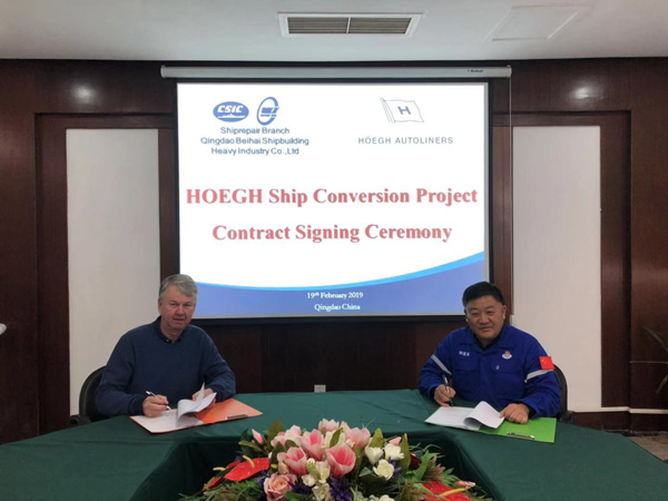 新年新氣象新作為。2月19日,公司副總經理、修船分廠廠長劉玉東和挪威禮諾航運公司新造和改裝負責人JAN RUNE MORKEN先生在修船分廠簽署HOEGH 2019年改裝合同。這是修船分廠在公司九屆一次職代會后首次簽署的改裝工程新訂單,也是分廠落實公司職代會精神的具體行動和實效,為今年分廠的工作取得開門紅。