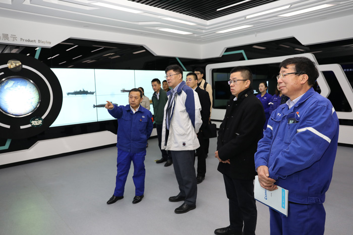 韓兵代表公司對王琦一行的到來表示熱烈歡迎,并向其介紹了北船重工的地理位置、廠區(qū)布局、設備設施等基本情況;帶領來賓參觀了民品展廳,介紹了武船集團和北船重工的發(fā)展歷程、業(yè)務范圍及核心產(chǎn)品;陪同來賓一同觀看了武船集團宣傳片和北船重工宣傳片。
