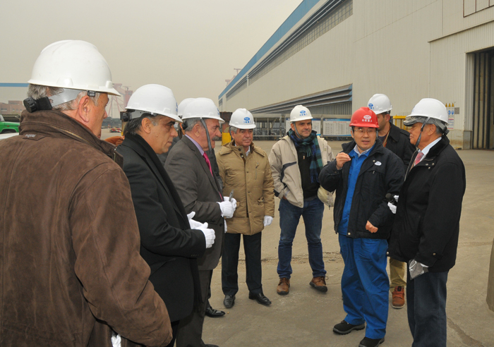 在聯(lián)合廠房、50萬噸造船塢生產(chǎn)現(xiàn)場,張書記向客人介紹了公司近期生產(chǎn)經(jīng)營情況,并對在建的25萬噸礦砂船和18萬噸散貨船做了詳細介紹。 (崔應(yīng)升/圖文)