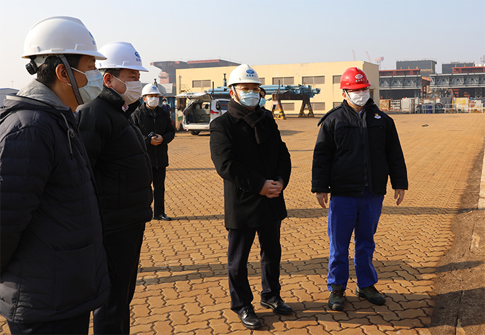 2月10日,公司復(fù)工第一天,青島市副市長耿濤一行來公司檢查防疫和節(jié)后復(fù)工事宜,公司黨委書記、董事長王國海陪同檢查,耿濤一行先后到修船廠區(qū)、造船大塢等進(jìn)行實(shí)地檢查。檢查后,耿濤對公司的防疫、復(fù)工工作給予了肯定,并要求繼續(xù)做好防疫工作,時(shí)刻不放松,打贏這場沒有硝煙的戰(zhàn)爭,同時(shí)做好復(fù)工復(fù)產(chǎn)工作。