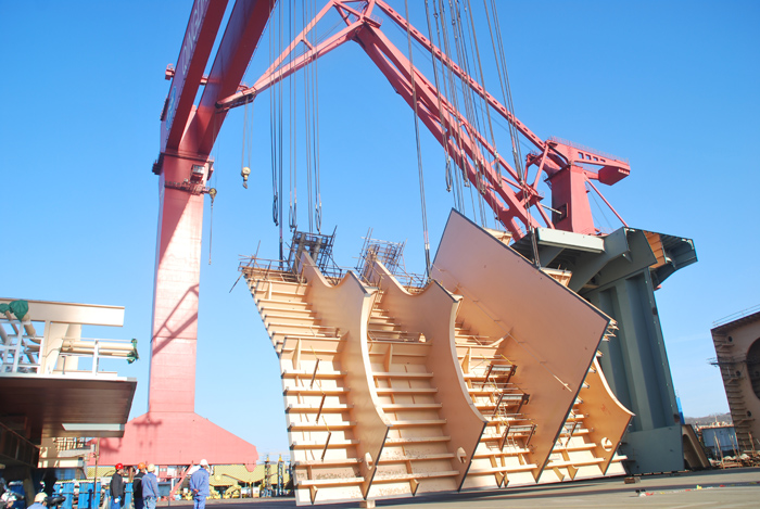 節(jié)后伊始,公司面對在建船舶數(shù)量多、交船量大、生產(chǎn)壓力大的局面,積極“適應(yīng)新常態(tài),推進新發(fā)展”,拉開了造船新高潮。截止3月上旬,已開工18萬噸散貨船6艘、25萬噸礦砂船6艘,在建船舶達到12艘。其中,25萬噸5號船計劃本月交船。目前,2號造船塢內(nèi)同時在建三艘船,1號塢在建2艘,其他船舶分別處于大合攏、分段制造、下料階段。按照建造計劃,3月中旬將開建1艘18萬噸散貨船。今年共交船11艘,計222萬載重噸,創(chuàng)歷史新高。