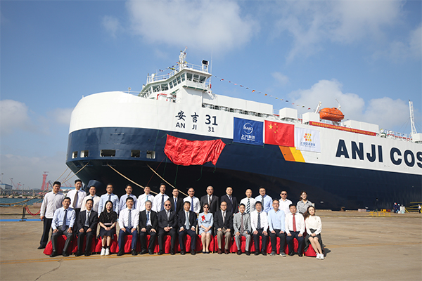 9月29日,武船集團(tuán)為安吉航運(yùn)有限公司建造的2艘2200車位汽車運(yùn)輸船命名交付。儀式由公司黨委書記王國海主持,武船集團(tuán)黨委書記、董事長陳埥,安吉航運(yùn)董事長王澤民先后致辭并簽署了交船議定書。上海汽車集團(tuán)股份有限公司財務(wù)管理部總經(jīng)理顧曉瓊女士將2艘船分別命名為“安吉31”“安吉32”,并在陳埥和王澤民的陪同下為2艘船分別砍纜。